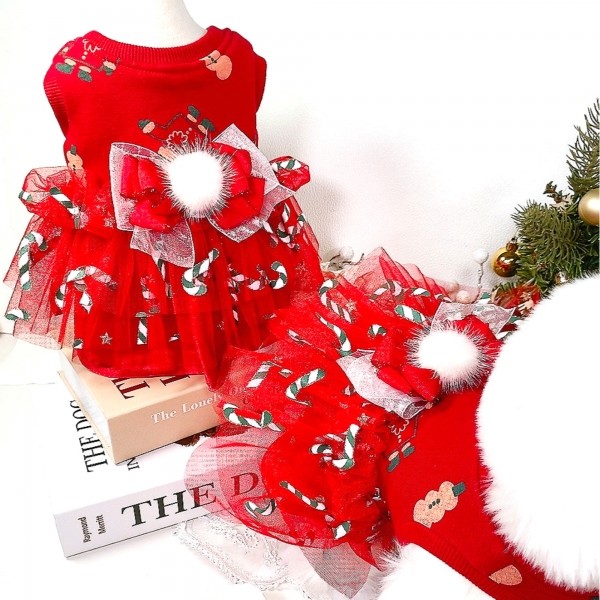 [감사특가]플로피이얼스,크리스마스 레드켄디 강아지드레스,애견원피스