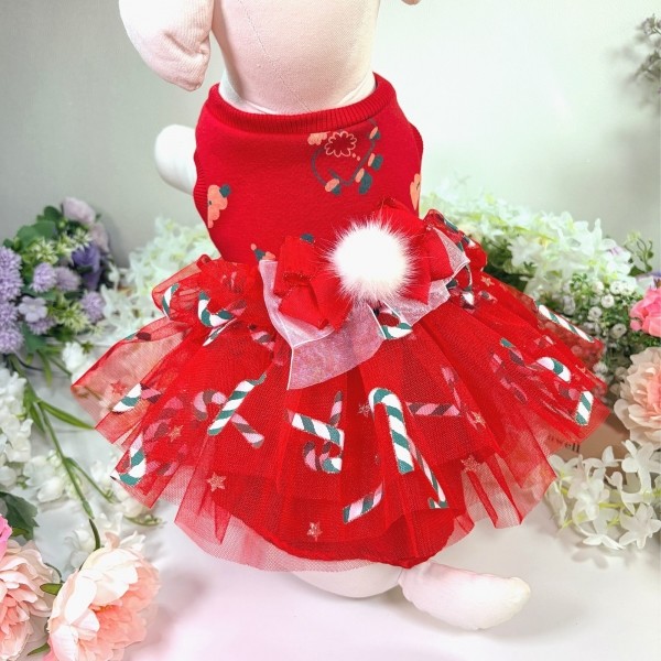 플로피이얼스,크리스마스 레드켄디 강아지드레스,애견원피스