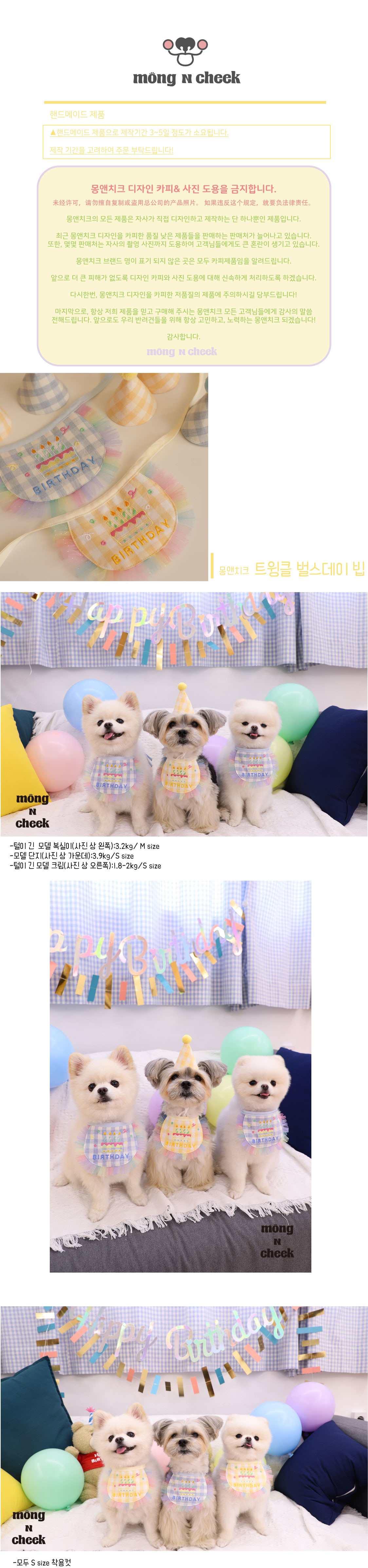 일반적으로 4kg이하 반려견에게는 스몰 사이즈를 추천드리며, 이상인 반려견에게는 미듐 사이즈를 추천드립니다.