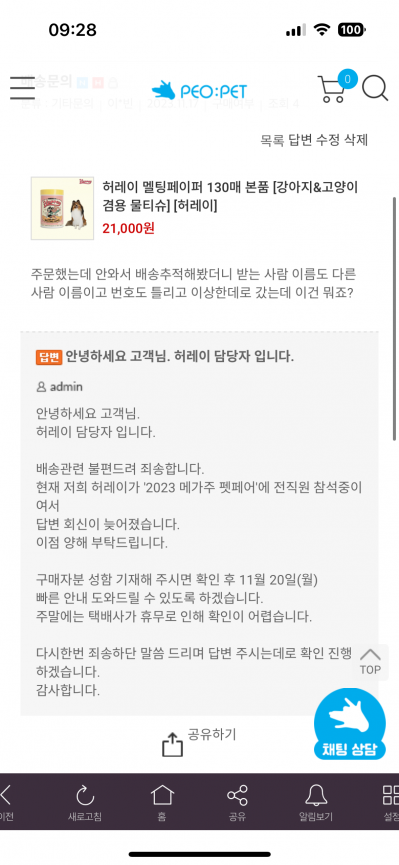 • [불량상품 문의]