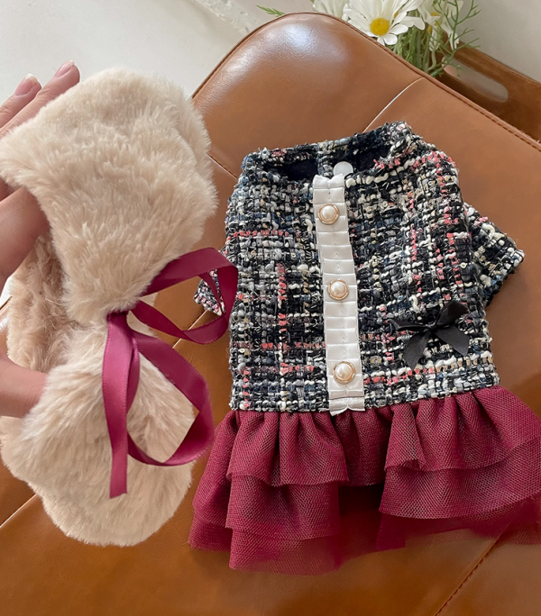 치어펫 연말 파티의 주인공은 나야나 - 목도리SET /강아지 트위드 원피스