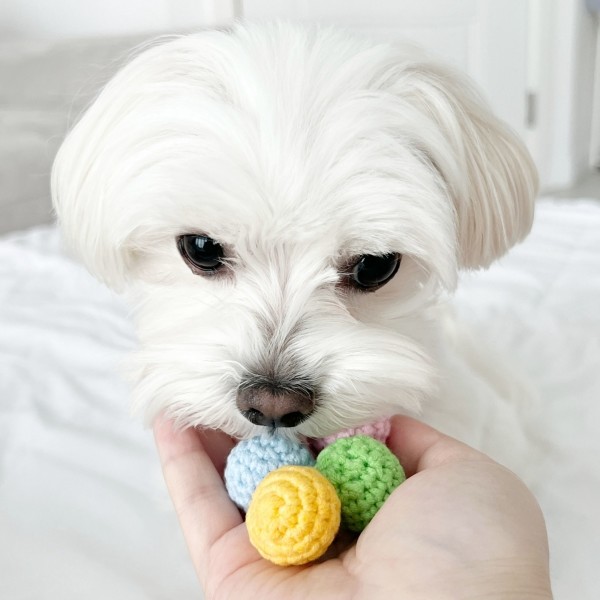 뜨개 미니공 장난감은 굴리며 드리블도 하며 스트레스 해소에 도움이 되며 치석제거효과에도 좋습니다.