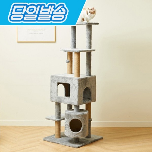 • 한층뚝딱 플러시 6단 고양이 캣타워 그레이