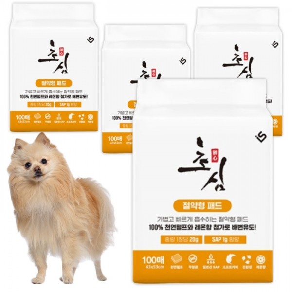 초심패드 오렌지 무향 강아지 배변 패드 절약형 400매(100매x4개)