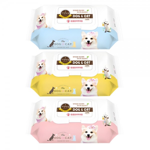 [반려동물전용물티슈]도그앤캣 고급 물티슈 100매 1팩 색상 랜덤 발송