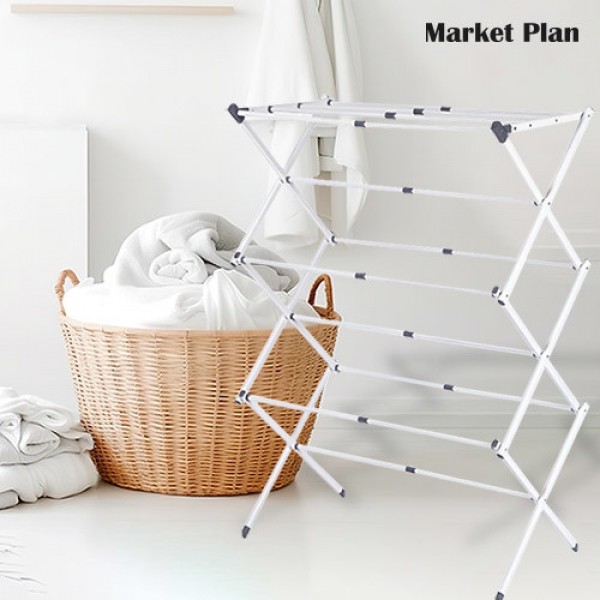 마켓플랜 플로어 다용도 길이조절 3단 빨래 건조대 화이트