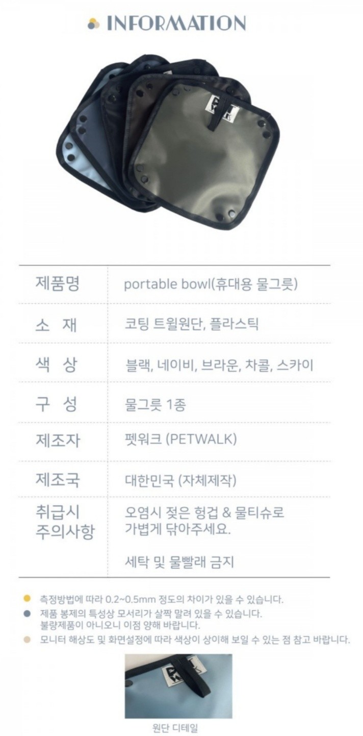 휴대용 접이식 물그릇을 준비했습니다.