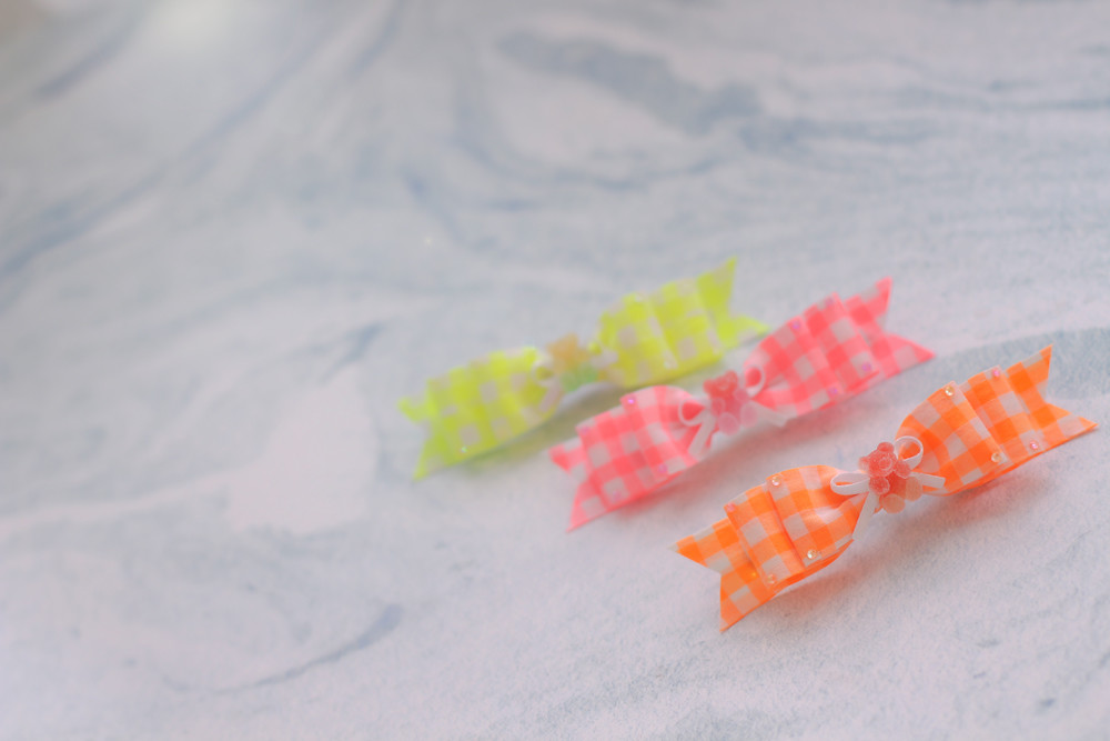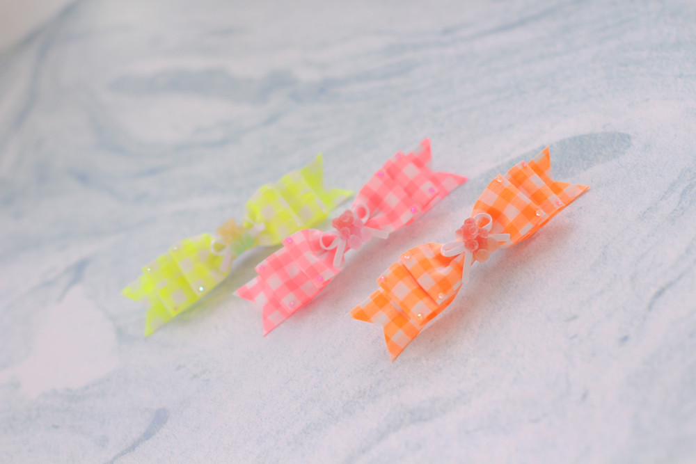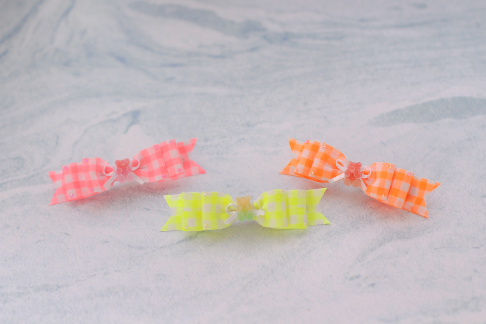 리본 엣지에 형광컬러스톤들이 콕콕 장식되어있어요.