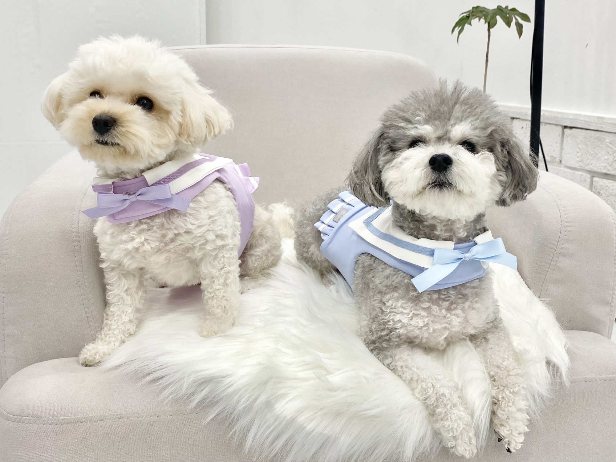 연보라, 소라컬러 좌) 크림 3.5kg M size, 우) 실버 4.5kg, M size