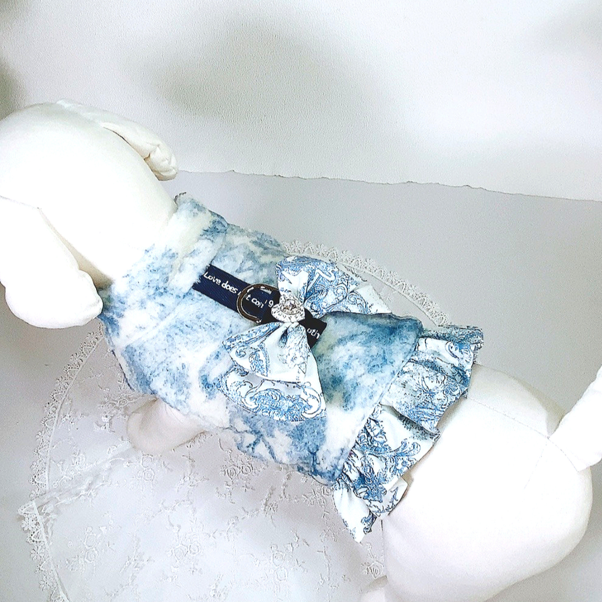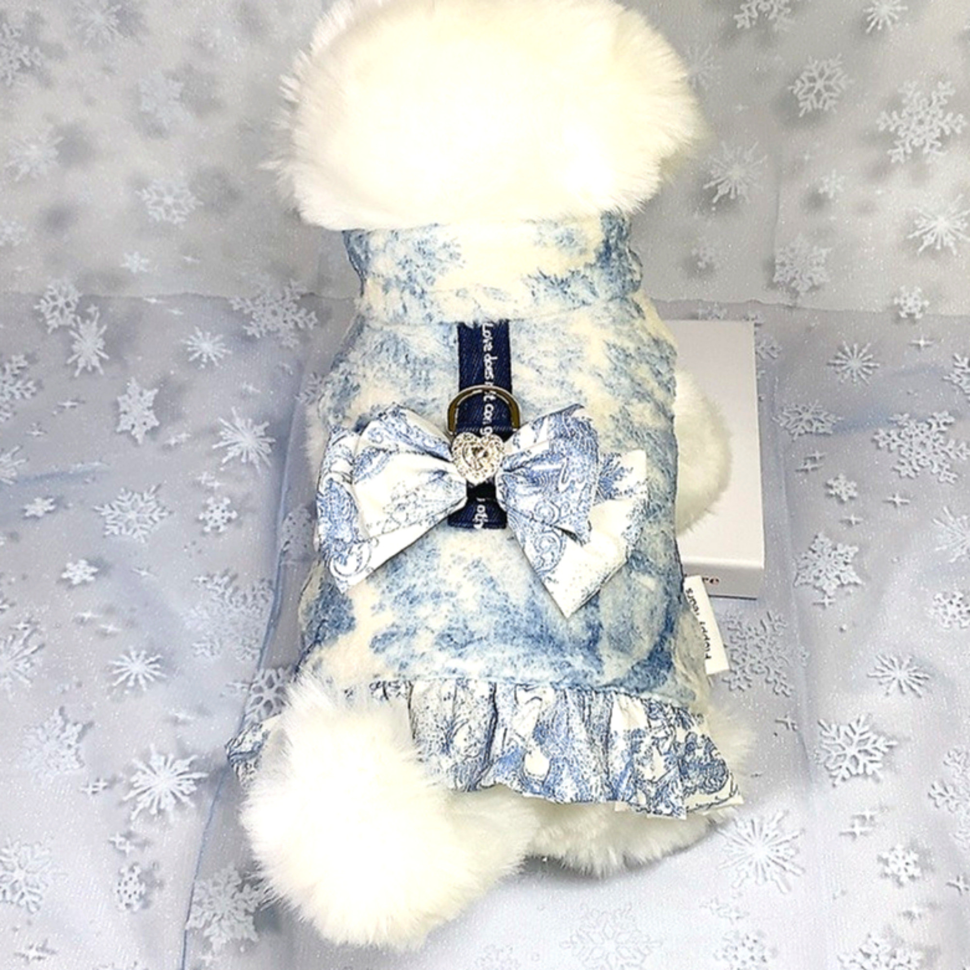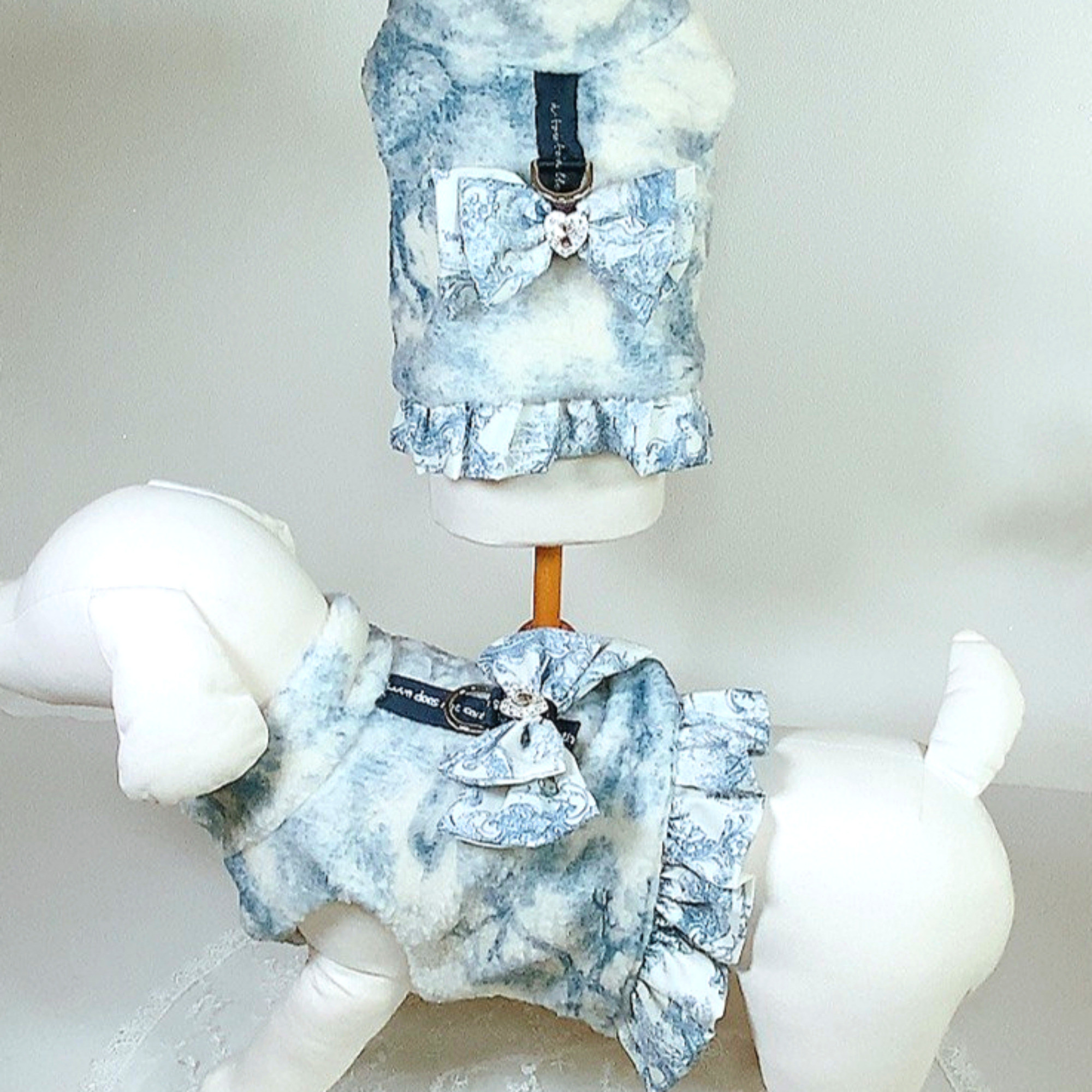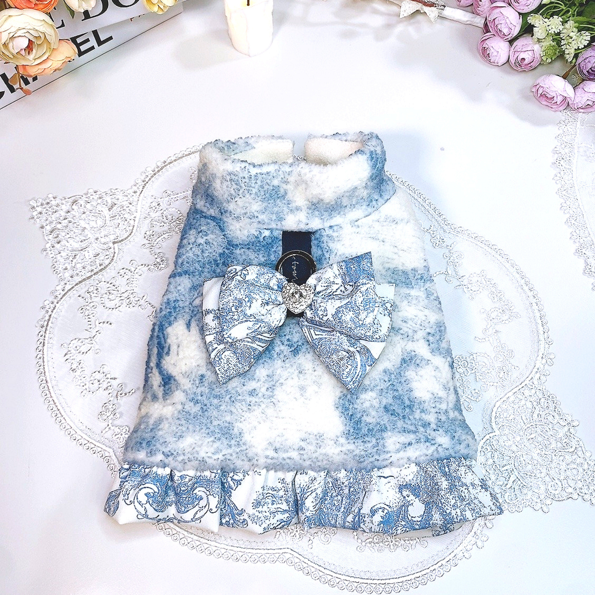 프린트 프릴장식과 리본장식이
