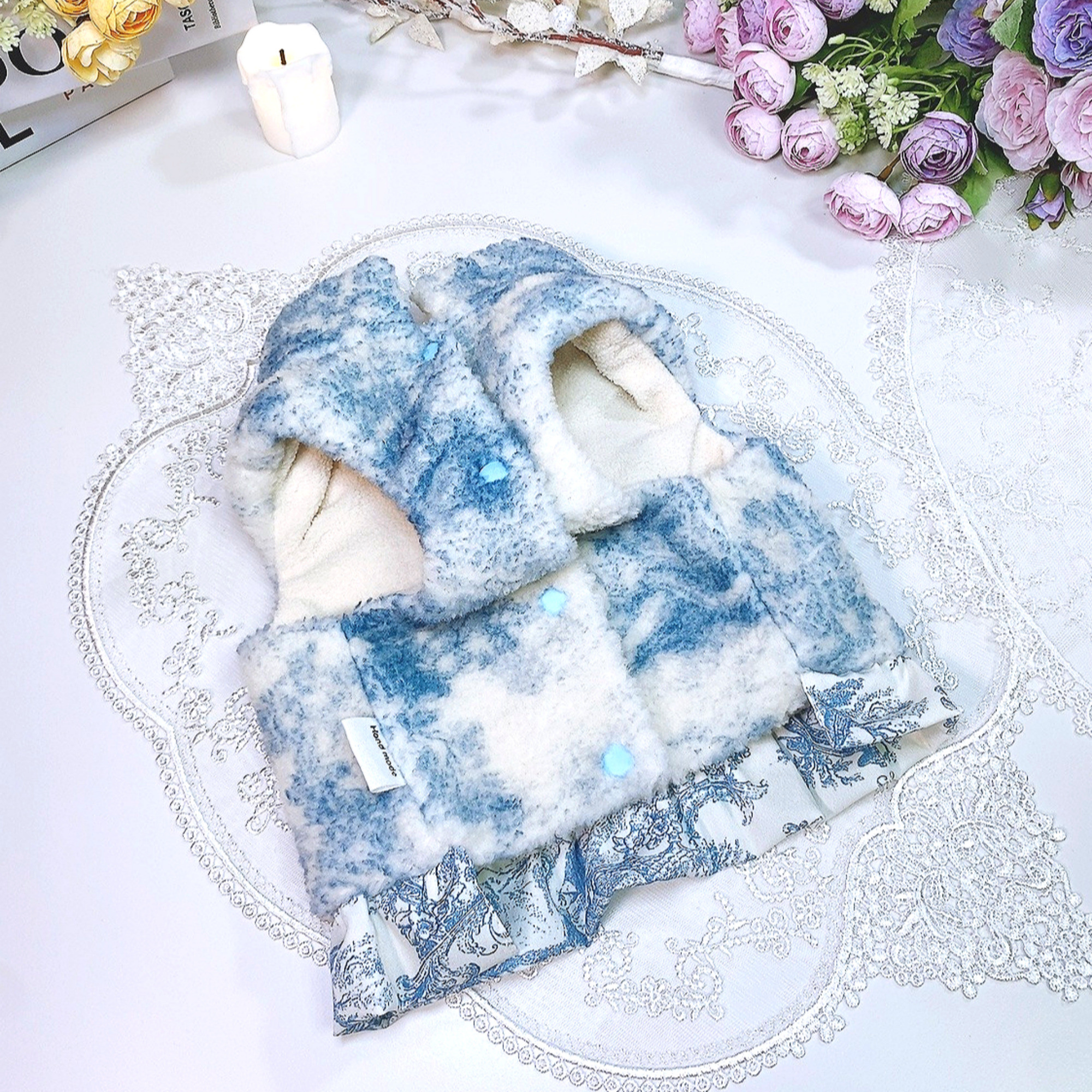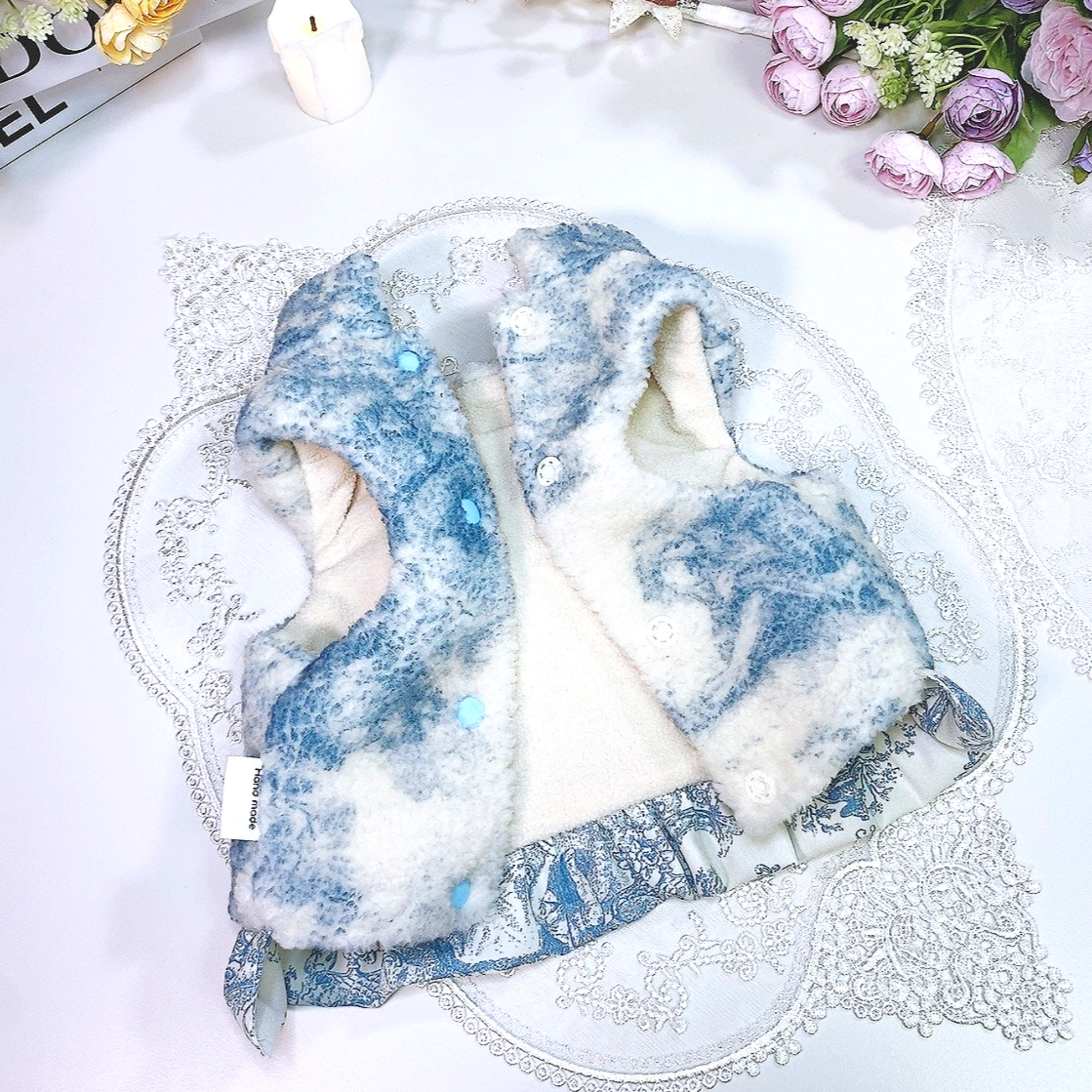 중세고풍스러운 무늬가 플리스에 프린트된