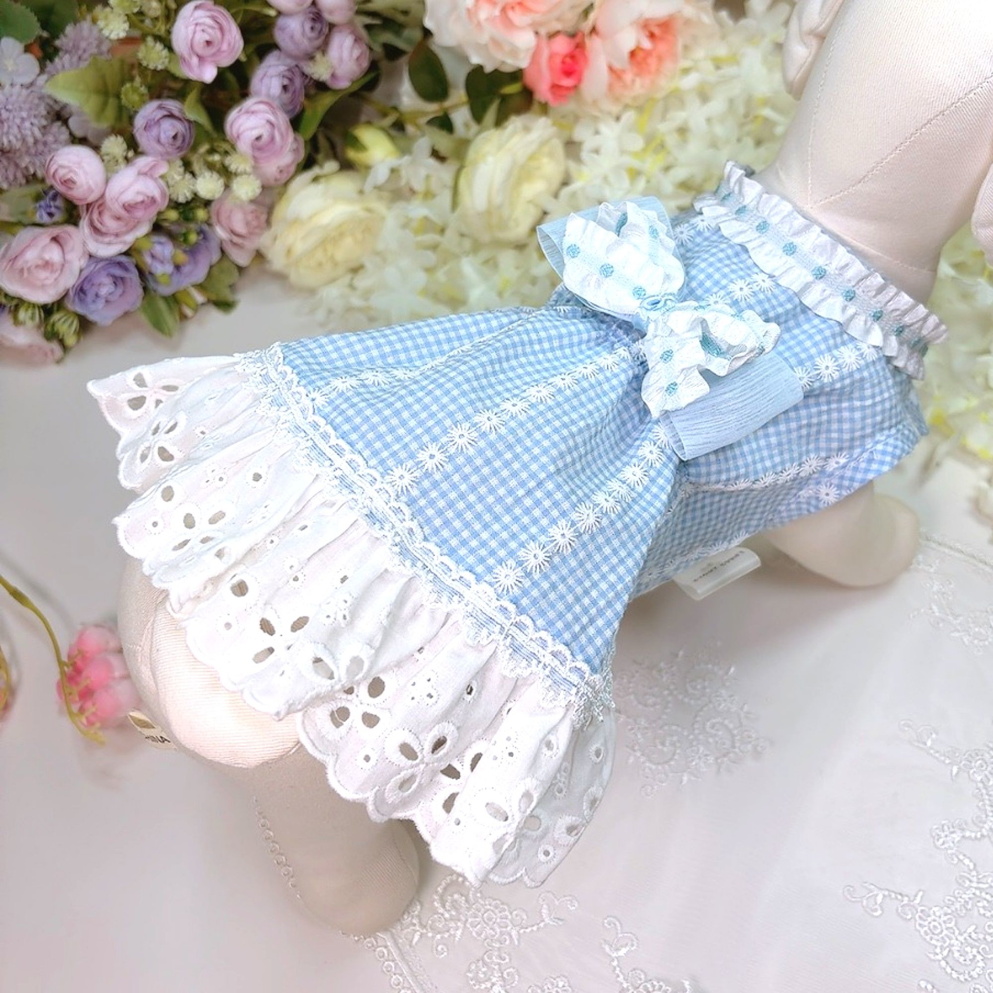 스커트 끝단에 레이스장식되어 있어서 더 귀여워요.