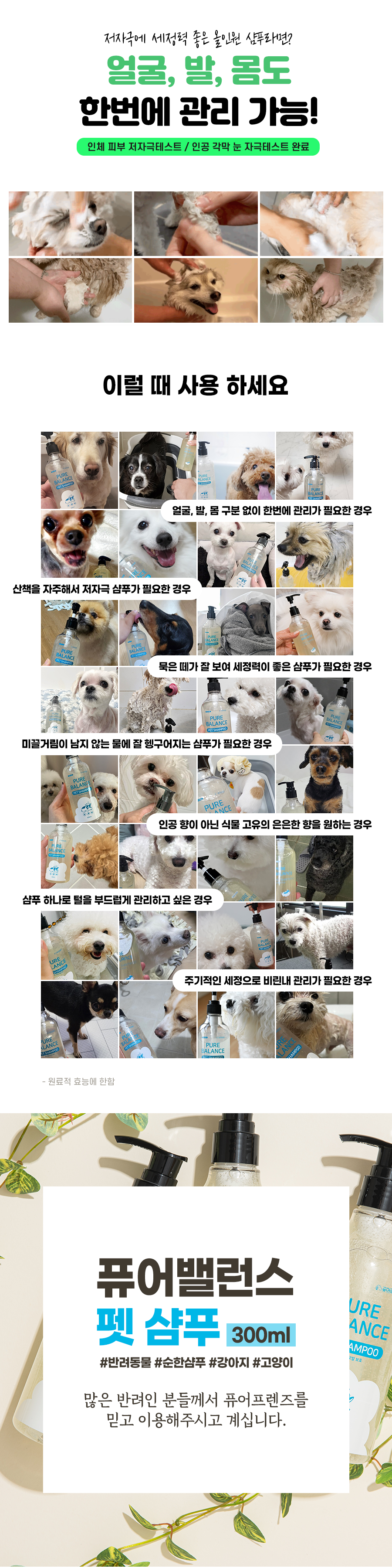 - 얼굴, 발, 몸 한번에 관리 가능한 올인원 펫샴푸