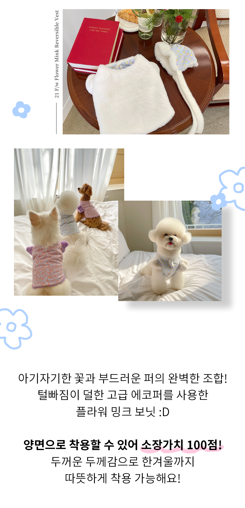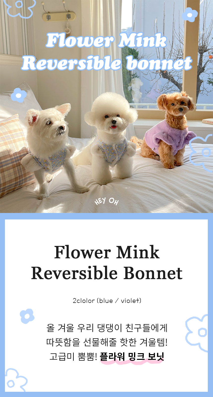 Flower mink reversible bonnet (2color)